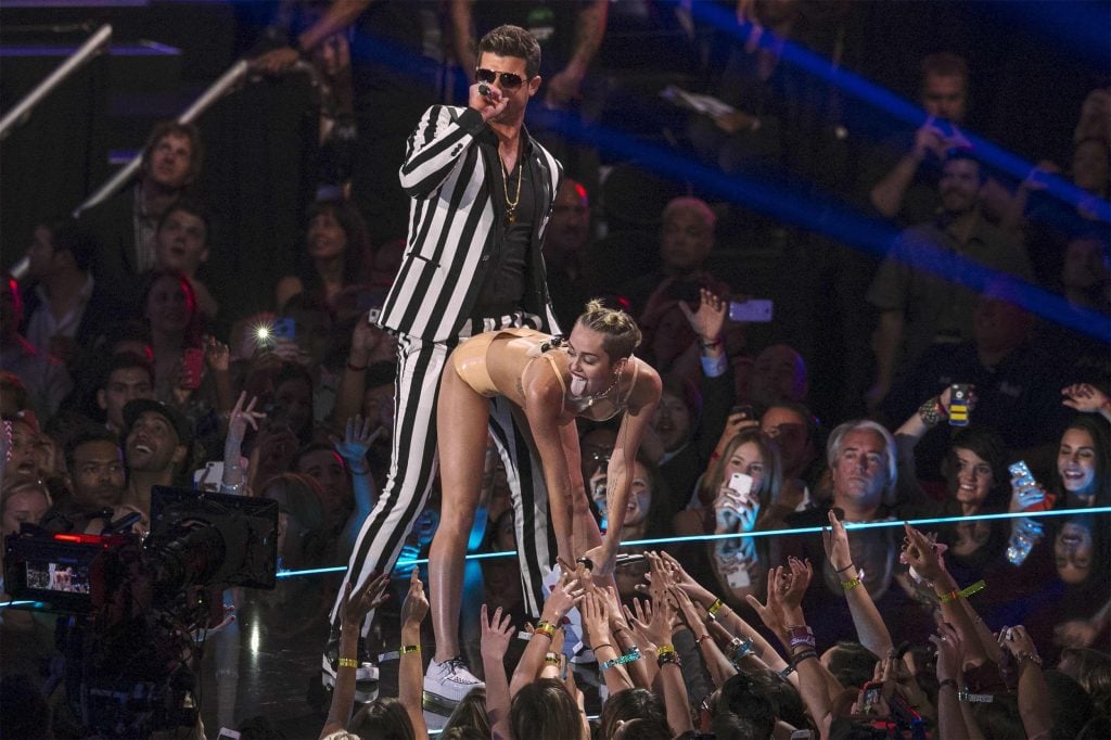 We all remember what happened next: Miley stripped off the teddy bear look to stomp the stage in a part of what can only be described as skin-colored latex underwear and a foam finger. She danced, she stuck her tongue out, she twerked on Robin Thicke. It was scandalous and made a lot of people uncomfortable. Although Miley received significant criticism for that stunt, she stated that this singular moment profoundly changed her life and inspired her to create the Happy Hippie foundation, as she wanted to use the attention she received for a positive purpose.