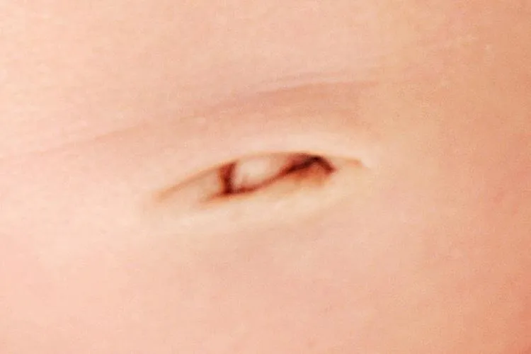 Pusar yang posisinya sedikit miring atau tidak berada tepat di tengah perut ini tergolong unik. Bentuknya tidak biasa dan langsung menarik perhatian siapa pun yang melihatnya.