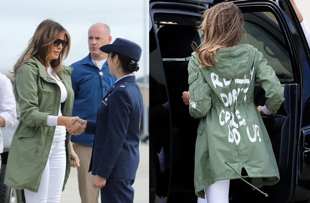 Первым громким эпизодом стала куртка, которую Мелания надела в 2018 году во время посещения центра для детей мигрантов в Техасе. Невинная на вид парка Zara болотного оттенка скрывала на спине фразу «Мне правда всё равно. А вам?». Сочетание текста и контекста вызвало взрыв негодования: кто-то посчитал это жестокой насмешкой, а кто-то — намеренной провокацией. Так или иначе, эта куртка навсегда закрепилась в истории как один из самых громких модных промахов первой леди.