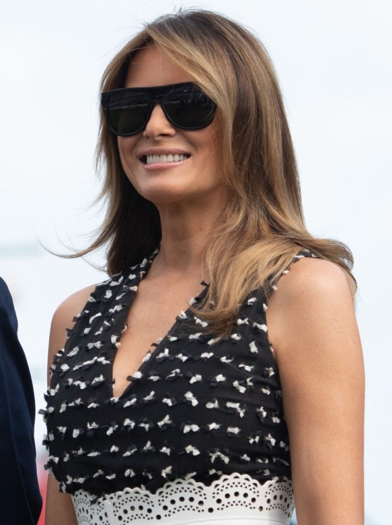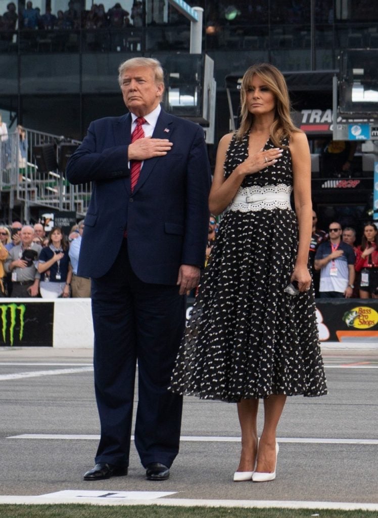 Спустя два года Мелания снова оказалась в эпицентре модного обсуждения — на этот раз из-за платья, которое она выбрала для гонок NASCAR во Флориде. Черное платье в белый горошек выглядело игриво и весьма по-южному, но массивный ажурный пояс нарушил гармонию. Он сделал весь образ — излишне сложным. Горошек, кружево и глубокий вырез — всё вместе создавали эффект «визуального шума», который неожиданно превратил лёгкий наряд в модную головоломку.