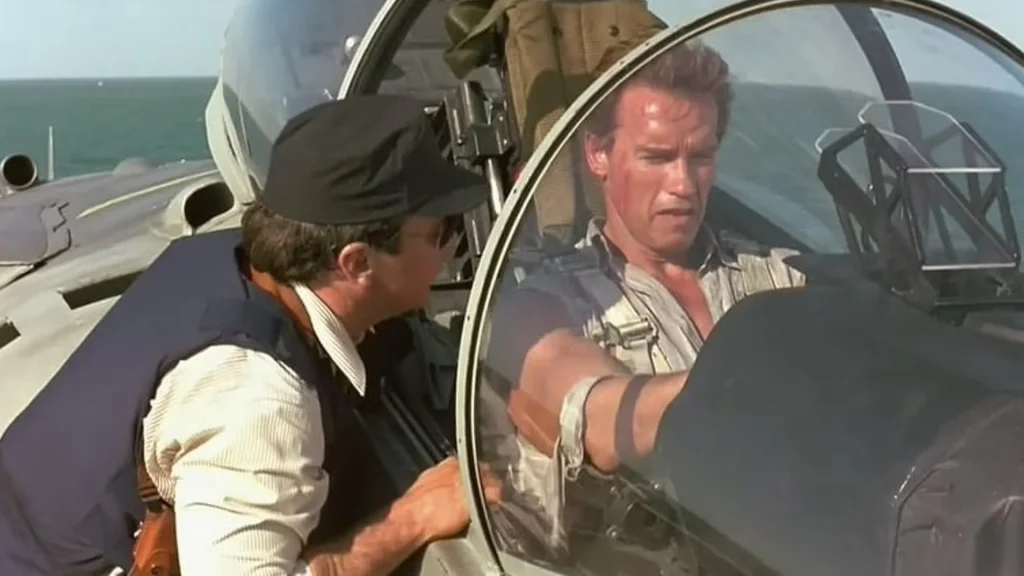 Gerçek Yalanlar filminden akıllara kazınan jet sahnesi, seyirciye abartılı bir aksiyon numarası gibi görünse de sette durum oldukça ciddiydi. James Cameron, sahneyi mümkün olduğunca gerçek çekmekte ısrar etti; yeşil ekran yerine fiziksel setler ve gerçek uçuş referansları kullanıldı. Jetin köprüye yaklaşması, patlamalar ve kamera açıları milimetrik hesaplarla planlandı. Oyuncular için bu sahne rol yapmaktan çok soğukkanlı kalma sınavıydı. Ekranda eğlenceli görünen aksiyon, kamera arkasında yüksek tansiyonlu bir operasyondu.