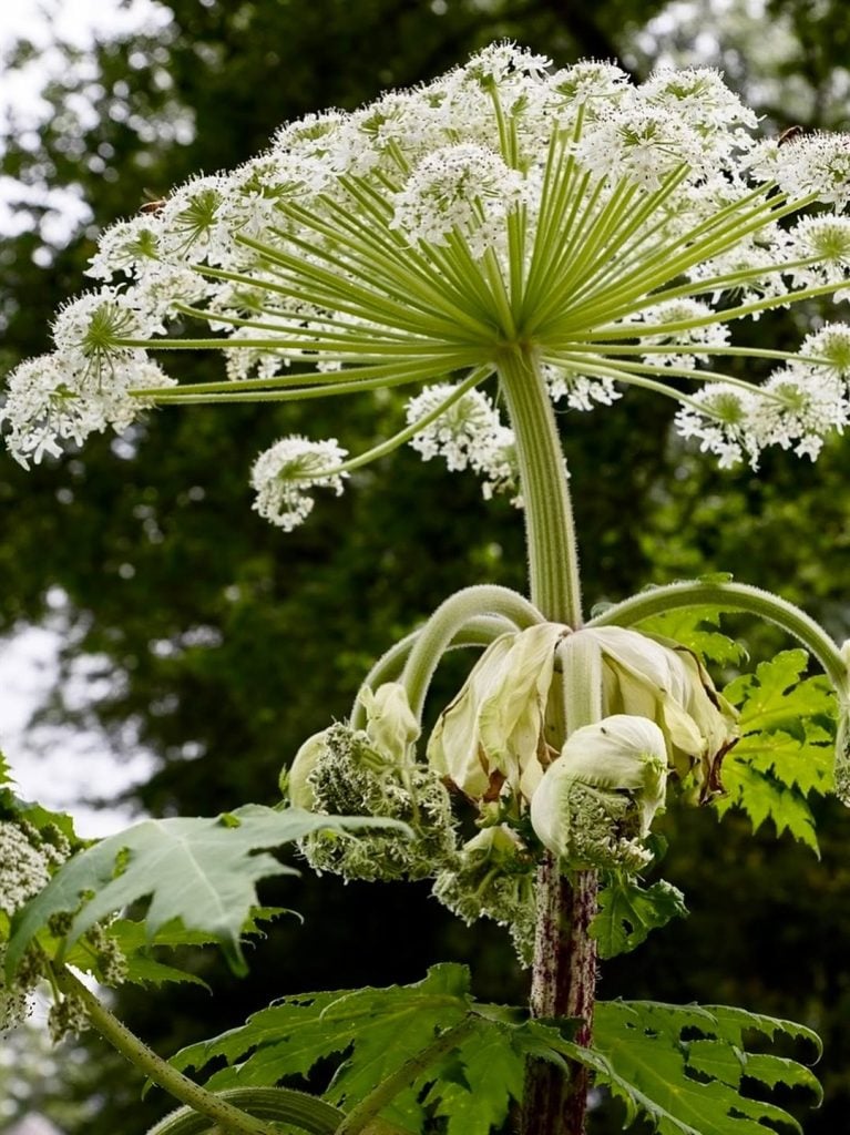 Двометровий гігант з парасольками часто виглядає як звичайний бур’ян, але його сік — справжня хімічна зброя. Найстрашніше те, що контакт із цією рослиною зовсім безболісний. Спочатку ви скошуєте борщівник, а згодом шкіра починає злазити пластами. Фурокумарин в його складі вимикає захист організму від ультрафіолету, викликаючи опіки другого ступеня. Це наче сонячний удар, що залишає по собі глибокі шрами на роки.