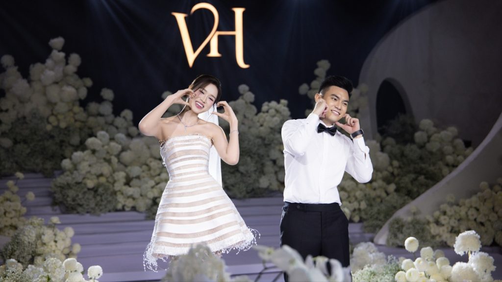 Sau phần lễ trang trọng và xúc động, Đỗ Hà trong bộ váy trắng ngắn giản dị đã lên sân khấu nhảy cùng chồng và bạn bè, tạo nên một bầu không khí vô cùng vui vẻ tại tiệc cưới. Nhờ biên đạo chuyên nghiệp dàn dựng các tiết mục nhảy, cả hai đã dành hai ngày tập luyện để có thể biểu diễn cùng nhau. Đỗ Hà và chồng đã nhảy liên khúc Anh là ngoại lệ của em – Một đời với những động tác vũ đạo dễ thương. Bên cạnh đó, họ cũng nhảy cùng “hội bạn thân” là những người đẹp nổi tiếng như Lương Thùy Linh, Đoàn Thiên Ân trên nền nhạc Marry You của Bruno Mars. Đúng chuẩn “tổng tài” nghiêm túc, Viết Vương đôi lúc khá lúng túng và quên động tác. Tuy vậy, được bà xã “nhắc bài”, anh có thể bắt nhịp trở lại.