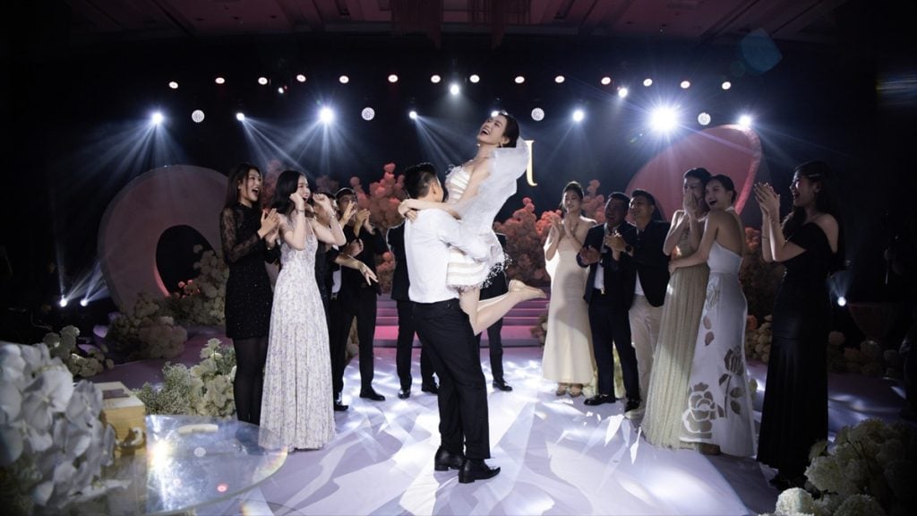 Kết thúc tiệc cưới ấm áp, xúc động nhưng cũng tràn đầy niềm vui, mỗi khách mời khi ra về đều nhận được một bó hoa trắng nhỏ, thể hiện sự biết ơn của cô dâu và chú rể về sự hiện diện của khách mời trong ngày trọng đại của họ.