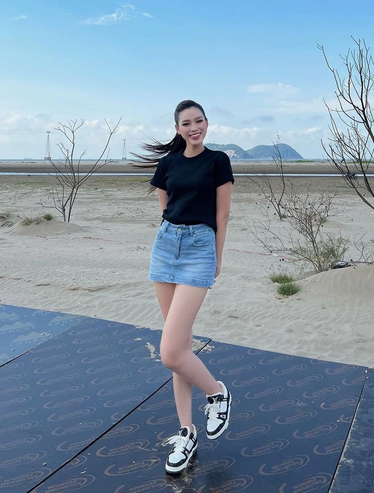 Sở hữu đôi chân dài 1m22, hoa hậu Lương Thùy Linh, đến từ Cao Bằng, từng đăng quang Miss World Vietnam 2019 và lọt top 12 Miss World 2019. Cô là người đẹp có đôi chân dài thứ hai trong showbiz Việt hiện nay. Nhờ lợi thế vóc dáng chuẩn, đôi chân dài thon gọn, người đẹp thường chuộng các loại váy ngắn, giúp làm nổi bật vẻ đẹp của vóc dáng và khoe đôi chân dài “xưa nay hiếm”.